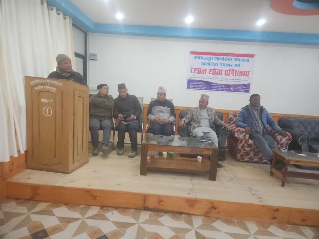 आधुनिक उपचार पद्धतिसंगै आधारभुत मानसिक स्वास्थ्य समस्या र पहिचान मनोपरामर्श सेवाको औचित्य र आवश्यकता तथा योगध्यानलाइ सर्वव्यापि वनाइ विना औषधि परम्परागत उपचार पद्धतिलाइ पनि अवलम्वन गर्दै लैजाने उद्धेश्यले आयोजित उक्त कार्यक्रम पौष १५ देखि १७ गतुम्म तिन दिन सञ्चालन भएको थियो । कार्यक्रम अवधिमा मनोचिकित्सक डा गिता सुवेदीले मानसिक स्वास्थ्य समस्या पहिचान र प्राथमिक उपचार पद्धति र मनोसामाजिक परामर्शकर्ता मधु पौडेलले आत्महत्या न्युनिकरण तथा मनोसामाजिक परामर्श सेवाको आवश्यकता र महत्वको विषयमा सहजिकरण गर्नु भएको थियो ।